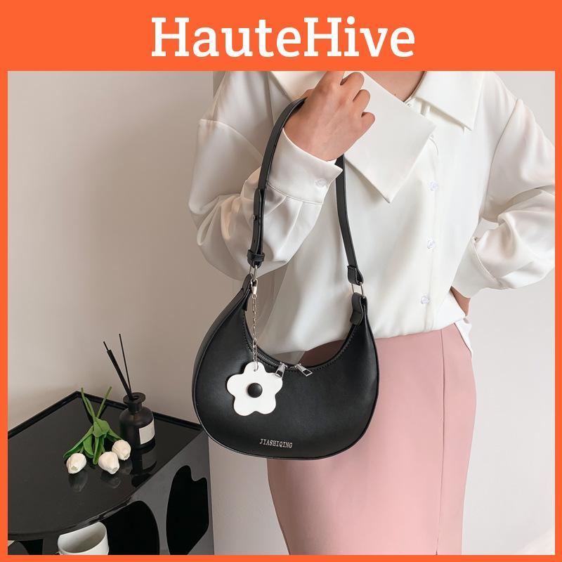 Trendy Street Style: Perfect for fashion-forward individuals, this crescent-shaped shoulder bag embodies the latest street style trends.