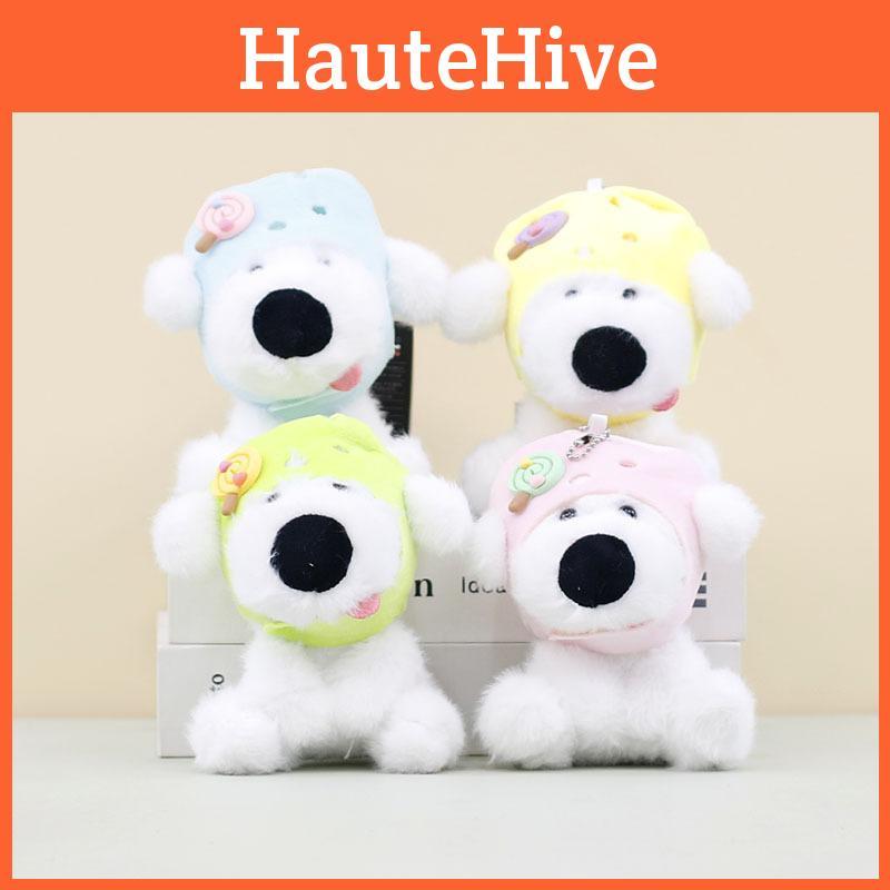 Lovable Plush Dog Keychain Cute Short-haired Stuffed Animal With Yellow Hat