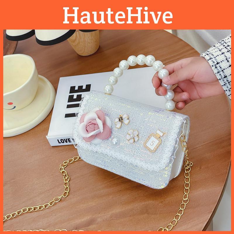 Introducing the Elegant Cartoon Princess Pearl Handbag - the ultimate accessory for your little girls magical adventures! Part of the 2023 Collection, this adorable sequin mini purse is designed especially for young girls who love to sparkle and shine like a true princess. Crafted with meticulous attention to detail, this handbag combines functionality with charm, making it a must-have addition to any young fashionistas wardrobe.