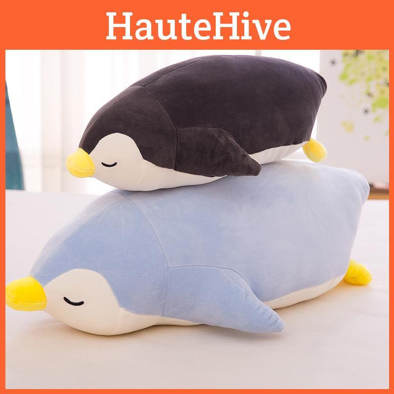 A penguin stuffed animal. Available in 4 different sizes, with heights of 35cm,50cm, 60cm and 70cm, you can choose the perfect size according to your space and preferences. The penguin plush is available in two colors: blue and black.