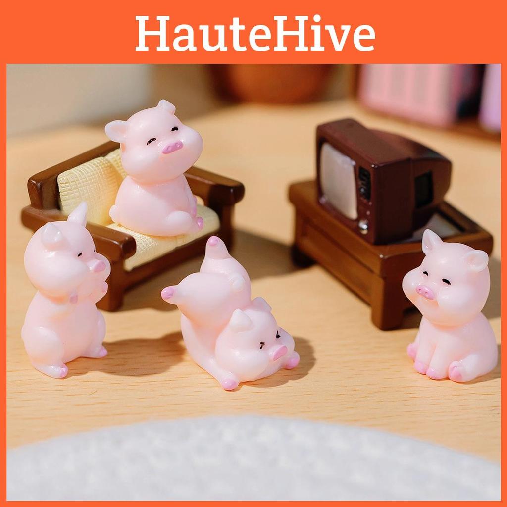 Cute Resin Cartoon Pig Figurines Animal Desk Car Accessories Home Decor Set
