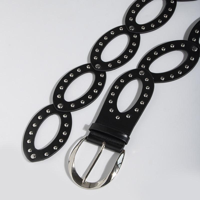 This high-quality women's belt features a wide design exceeding 4cm, crafted from durable leather with hand-applied decorative elements. It measures 101cm in length and showcases a vintage-inspired, artful style with irregular patterns and metal alloy buckle for secure closure. Ideal for enhancing retro or casual outfits. Wipe clean to maintain its finish.