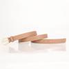 This women's faux leather belt features a durable alloy buckle . Crafted from high-quality synthetic leather, it offers a sleek, elegant look suitable for both work and leisure attire. Its simple pin closure ensures easy, secure fastening. Ideal for daily wear, it enhances casual and professional outfits. Wipe clean with a damp cloth to maintain its appearance.