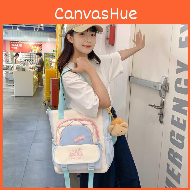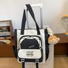 Trendy Canvas Shoulder Bag Cute Color Block Handbag Lightweight Waterproof