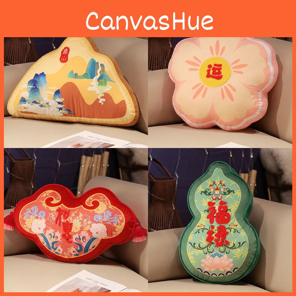New Chinese Style Plush Pillow With Auspicious Patterns For Home Decor