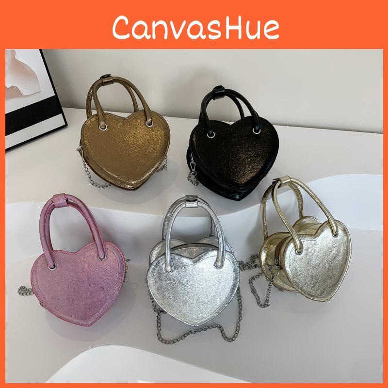 Street Chic Pu Small Square Bag Trendy Heart-shaped Zipper Closure Shoulder Bag Silver