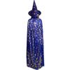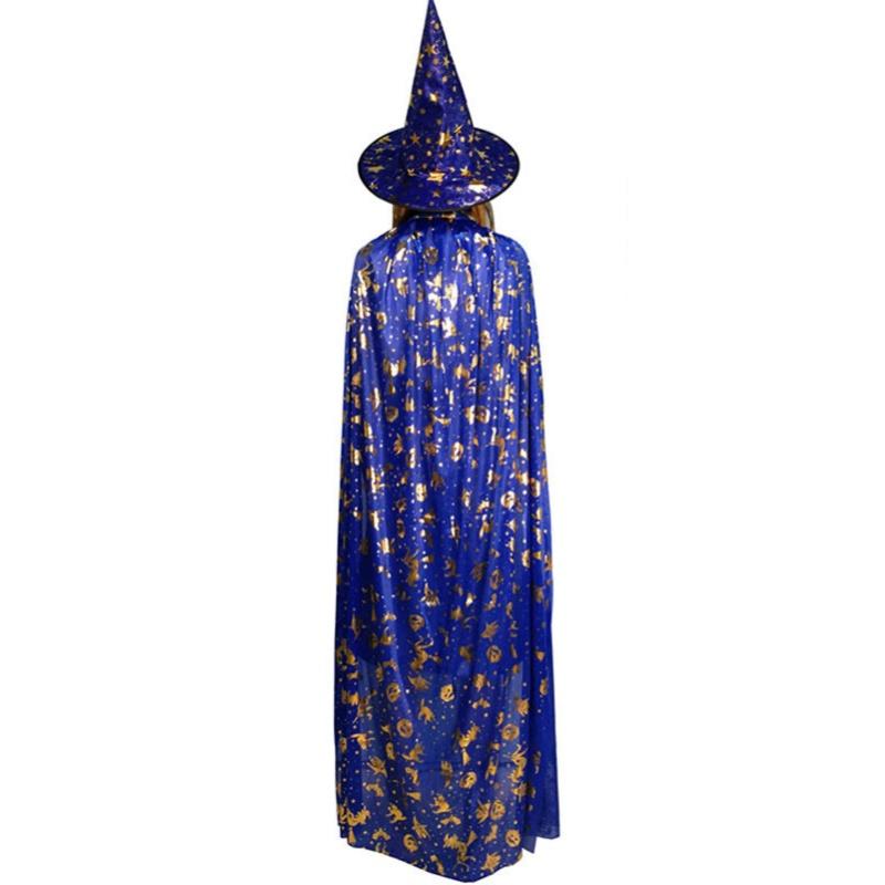 The cloak is designed in a traditional cape style, allowing you to easily drape it over your shoulders and secure it with the attached tie. The gold embroidery adds a touch of elegance and sophistication, making you look like a true witch or wizard. The matching hat completes the look.