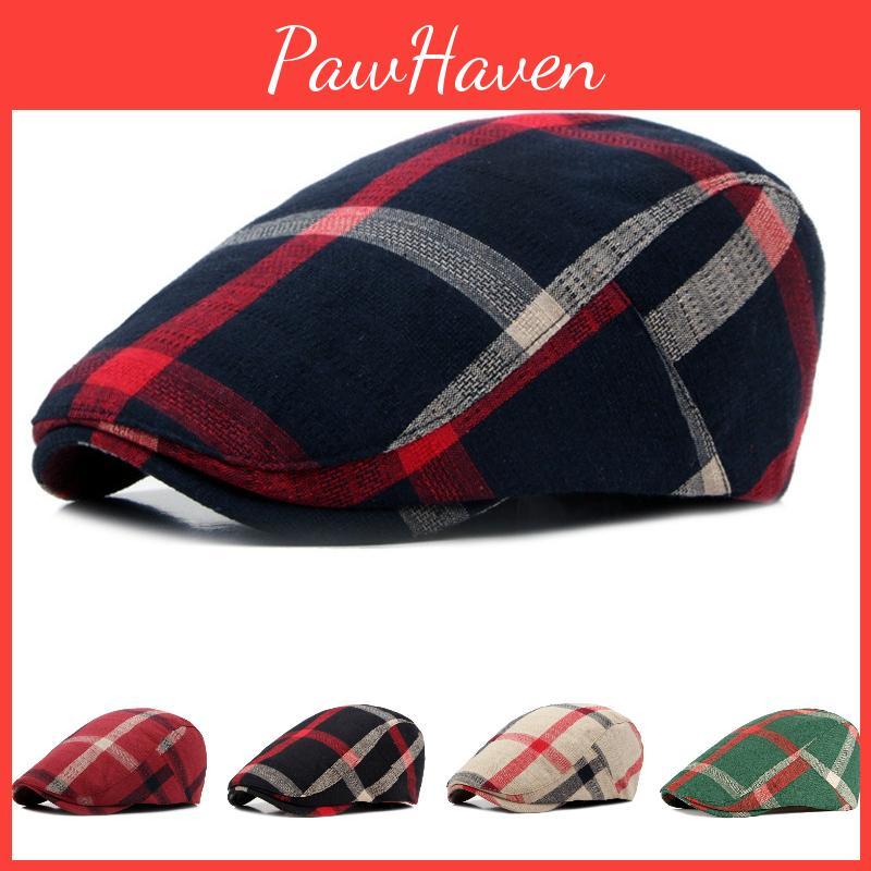 Stylish Unisex Beret Cap Vintage Plaid Pattern In 5 Colors