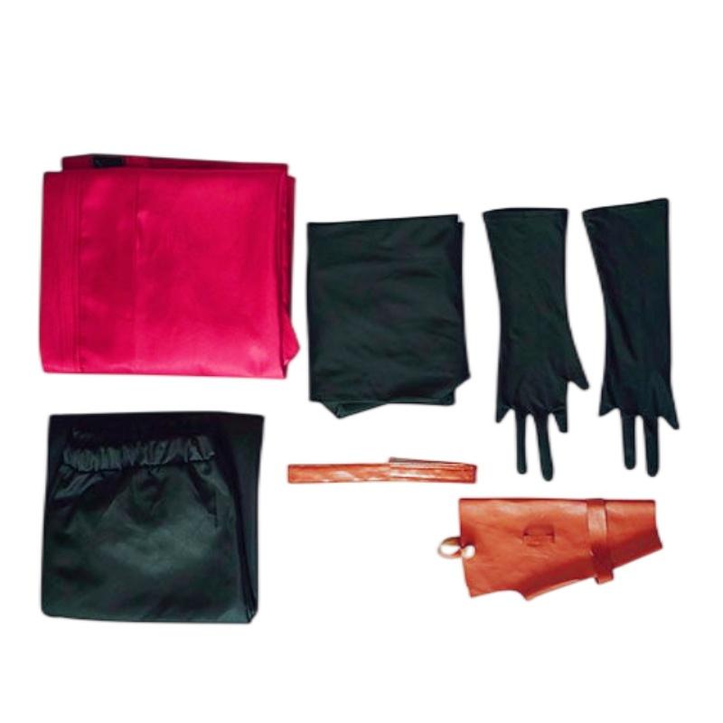 The outfit features a stunning red and pink design with intricate details that make it perfect for cosplay events, comic conventions, and Halloween parties.