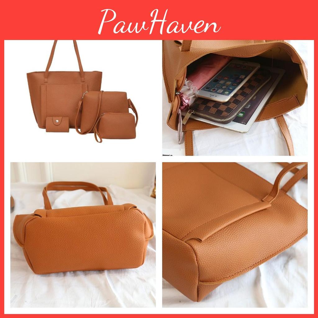 Fashionable Lychee Pattern Handbag Set For Women With 4 Pieces