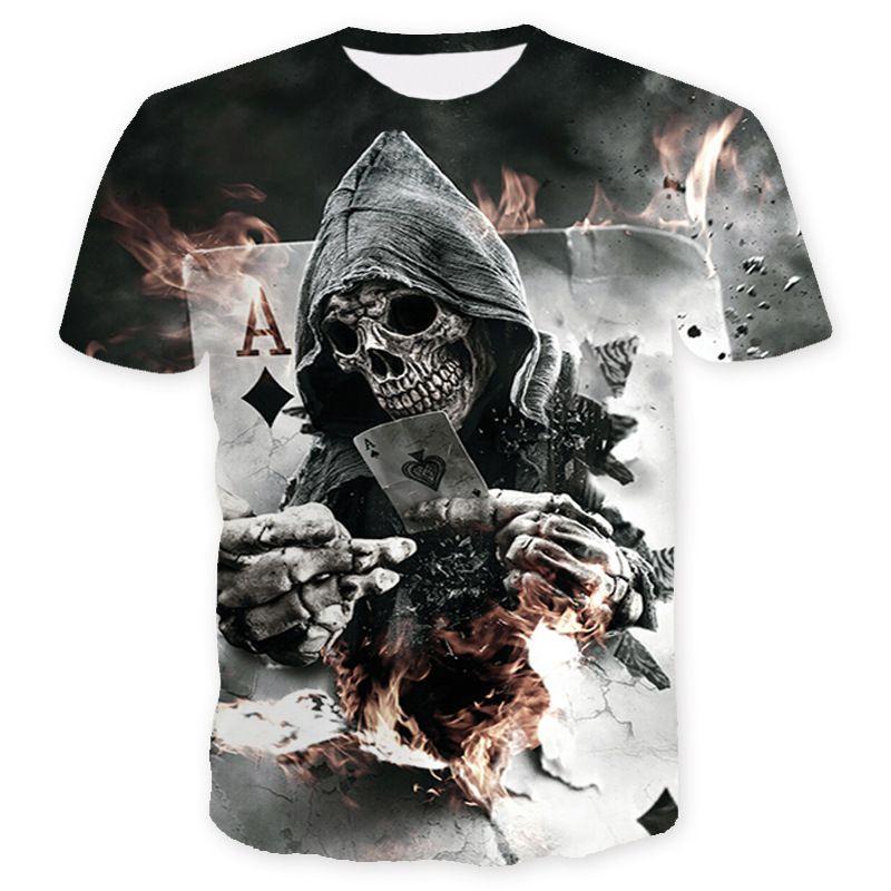 Fashion Men Funny Skull 3D Print T-Shirt Casual Crew Neck Short Sleeve Tops Tee