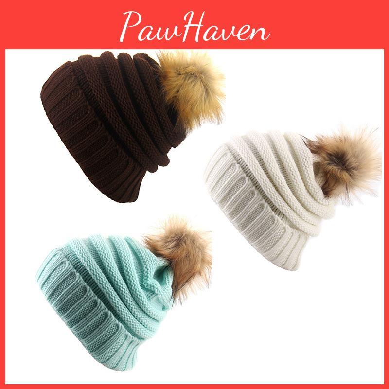 Trendy Women's Reversible Knit Hat With Soft Pom Pom For Winter Outdoor Activities