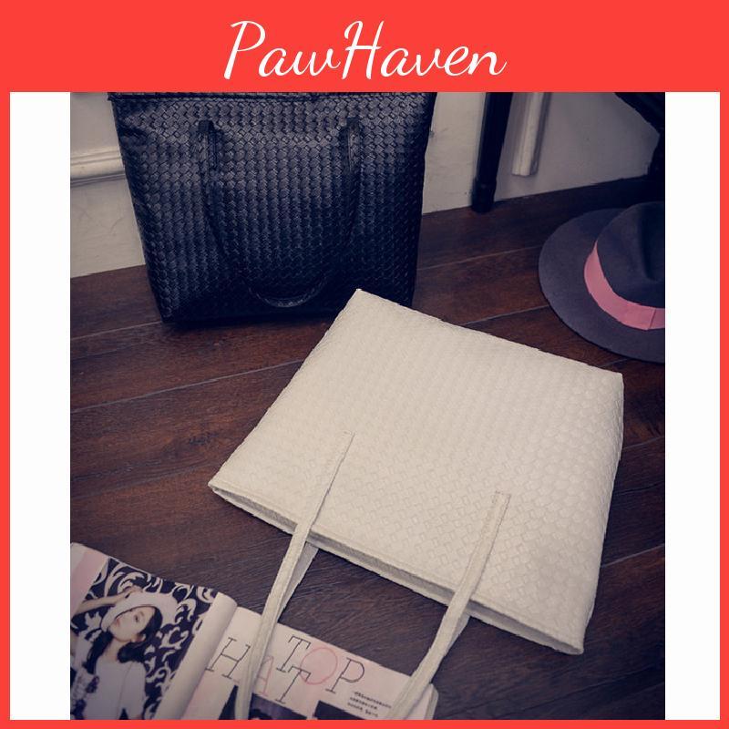 Stylish Large Capacity Pu Tote Bag For Women Retro Casual Woven Shoulder Handbag