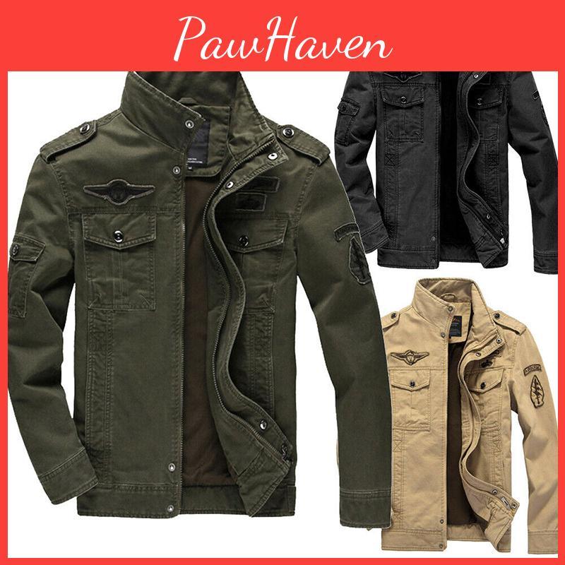 Men's Autumn Winter Thicken Military Jacket With Warm Lined Interior And Stand Collar