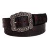 This vintage-style women's belt features a distressed embossed design with floral patterns, combining elegance and retro charm. Its intricate embossing highlights a rose motif, adding a touch of artistic sophistication. Ideal for adding a refined detail to winter outfits, this accessory complements both casual and dressy ensembles. Wipe clean with a damp cloth to maintain its textured finish.