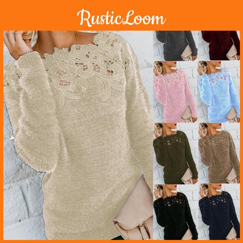 Cozy Women's Autumn Winter Fleece Sweater Tops With Elegant Lace Design For Style