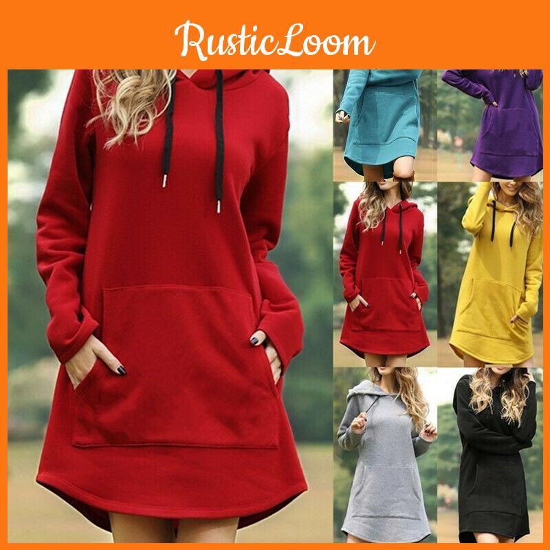 Cozy Womens Winter Long Sleeve Tunic Tops Pullover Hoodie Dress In Six Colors