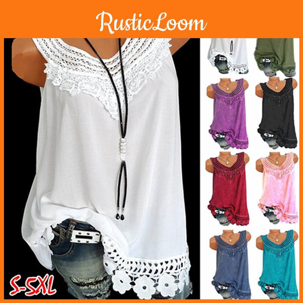 Women's Loose Sleeveless Vest T-shirt Blouse With Elegant Boho Lace Design In Plus Sizes