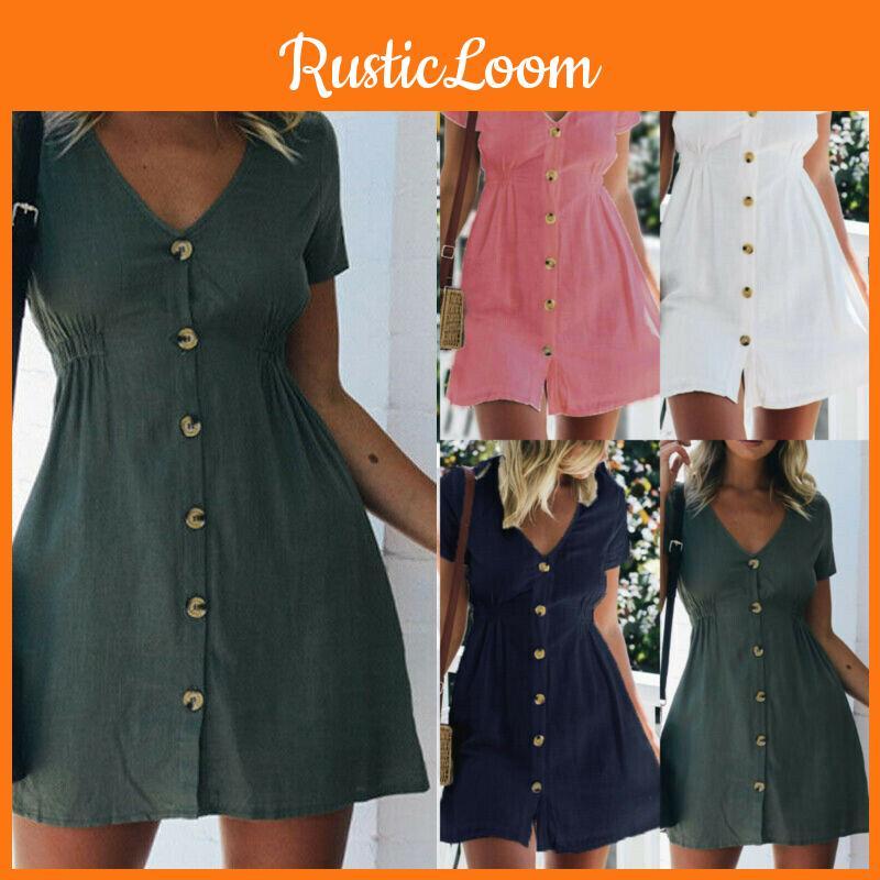 Stylish Women Button Down V Neck Mini Tea Dress In Soft Comfortable Fabric Perfect For Summer Days