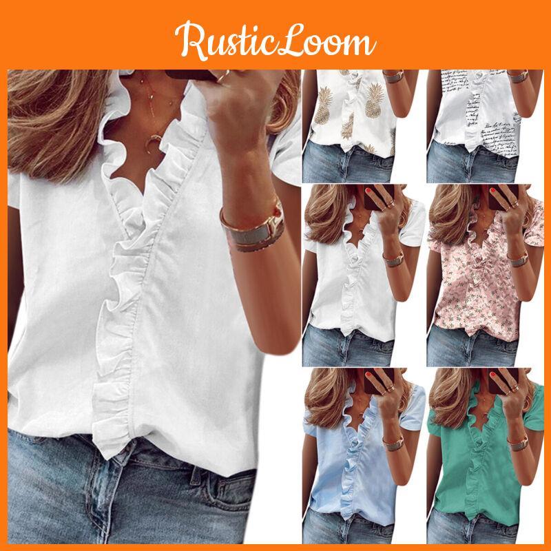 Stylish Women's V Neck Ruffle Short Sleeve T Shirt With Fashionable Daisy Print