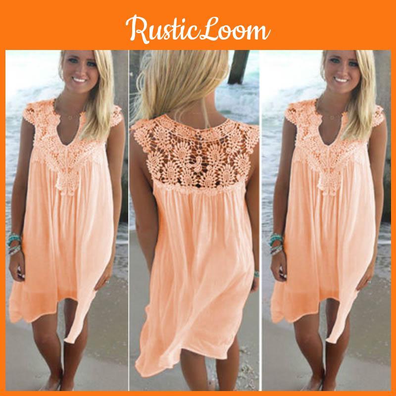 Elegant Plus Size Lady Boho Sleeveless Summer Beach Lace Dress For Women