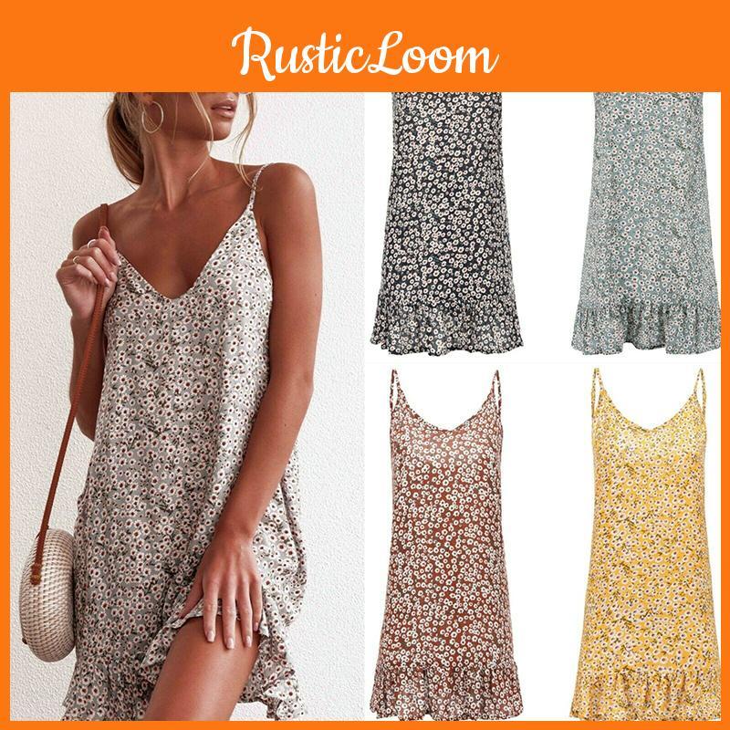 Womens Boho Sleeveless V Neck Floral Sundress Ladies Summer Beach Shirt Dress