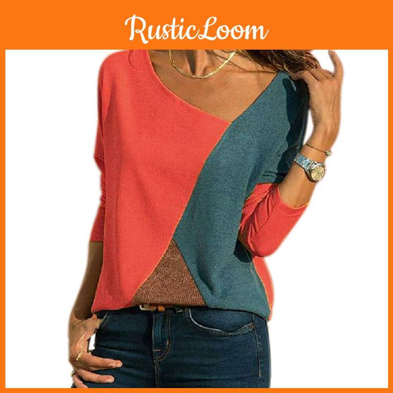 Elegant Women T-shirts Long Sleeve Round Neck Patchwork Pullover Slim Fit Female Tops