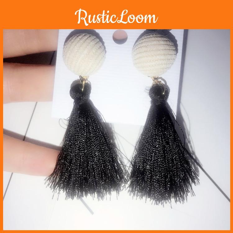Korean Elegant Sweet Button Tassel Pendant Personality Long Temperament Earrings
