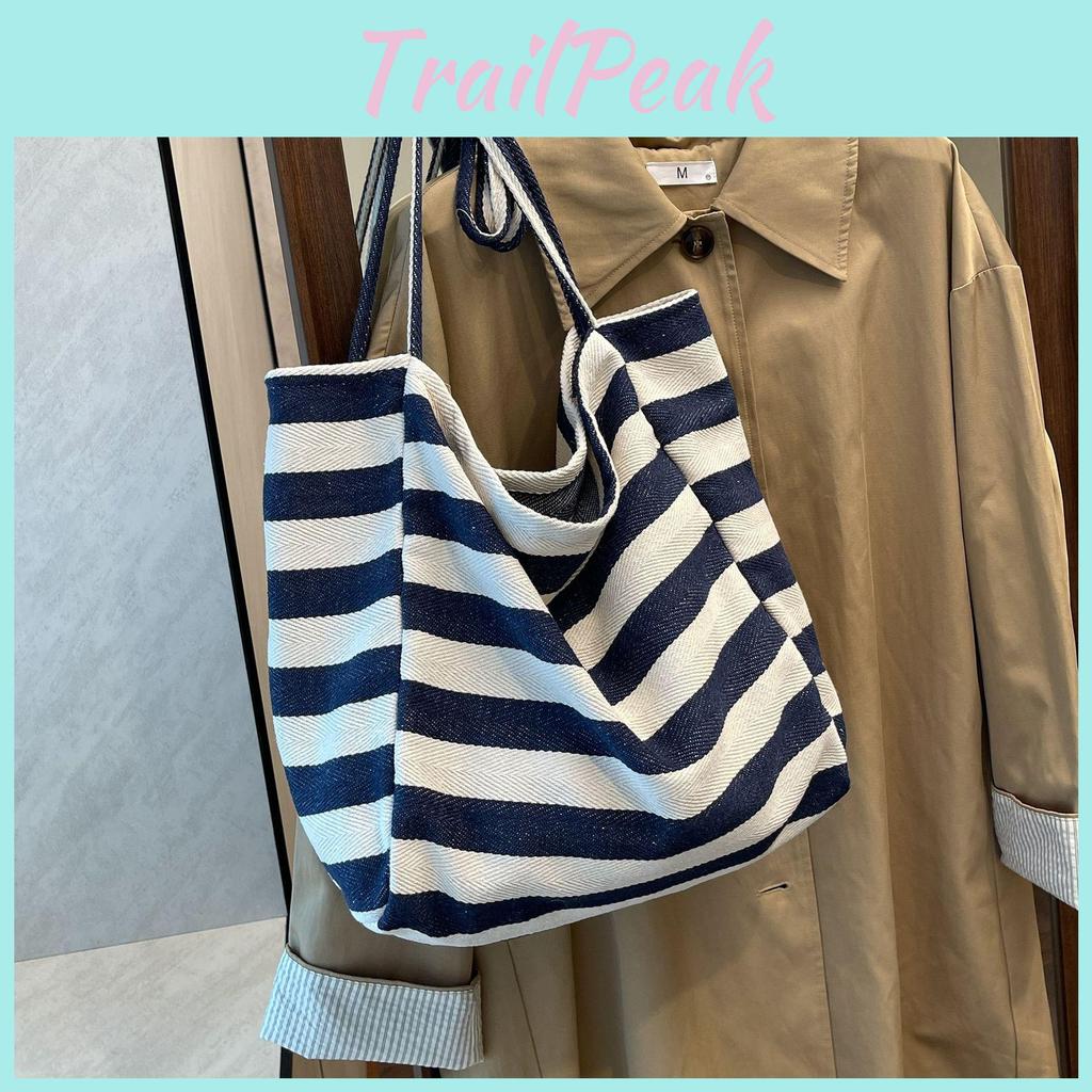 Versatile Style: The fashionable blue and black striped design makes this tote bag perfect for both casual outings and trendy street style looks.