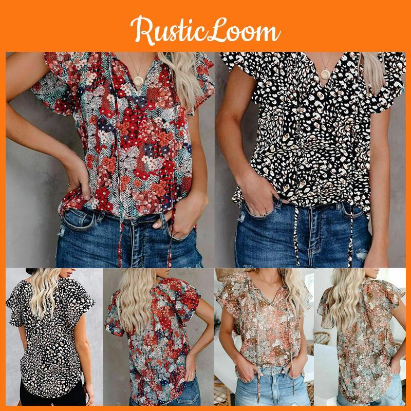 Elegant Womens Summer V Neck Short Sleeve T Shirt Featuring Vibrant Floral Print Design