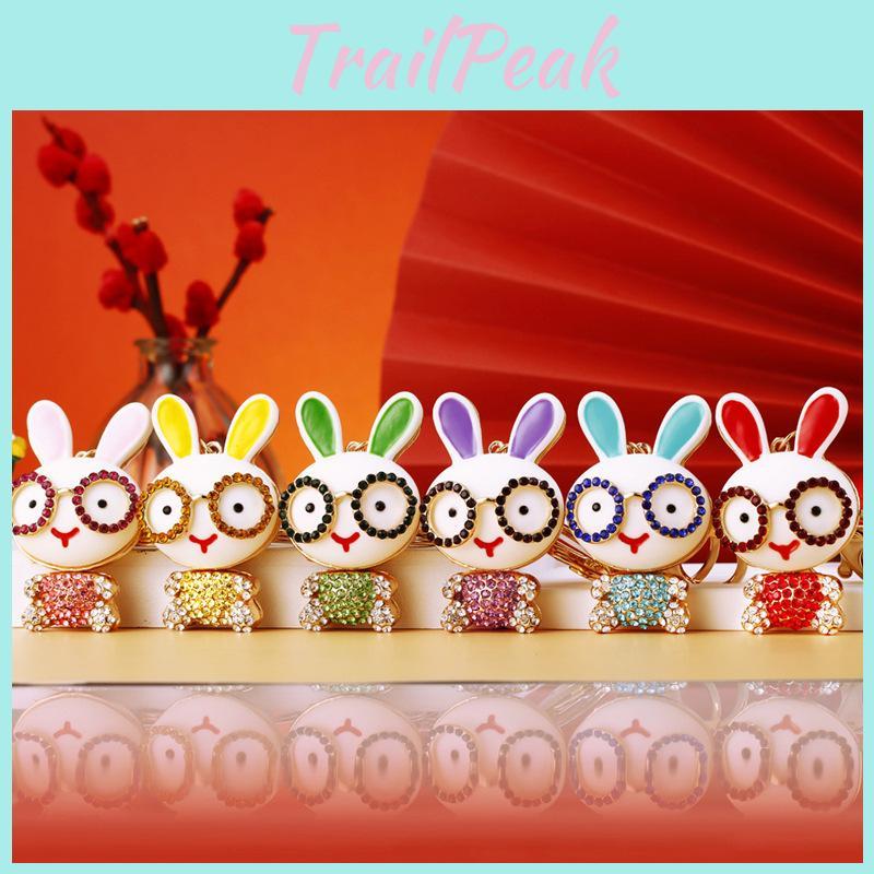 Creative Colorful Rabbit Keychain With Dazzling Rhinestones Stylish Keyring For Women
