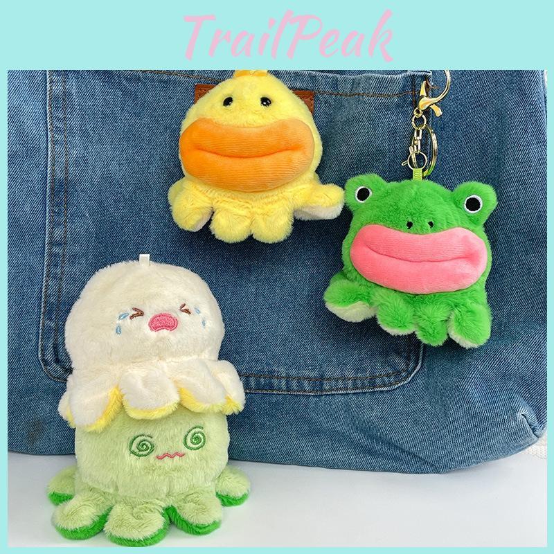 Fluffy Frog And Duck Keychain Charming Plush Doll For Couples Convertible Face