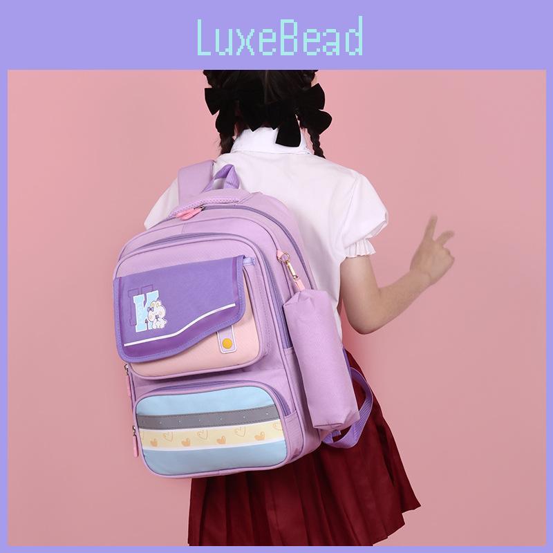 Available in a variety of vibrant colors including pink, light purple, dark purple, deep gray, navy with green, and navy with gray, this backpack incorporates trendy color-blocking elements that will surely catch the eye. Each color option allows your child to express their individuality and personal style while maintaining a fun and playful look that resonates with school spirit and youthful energy.
