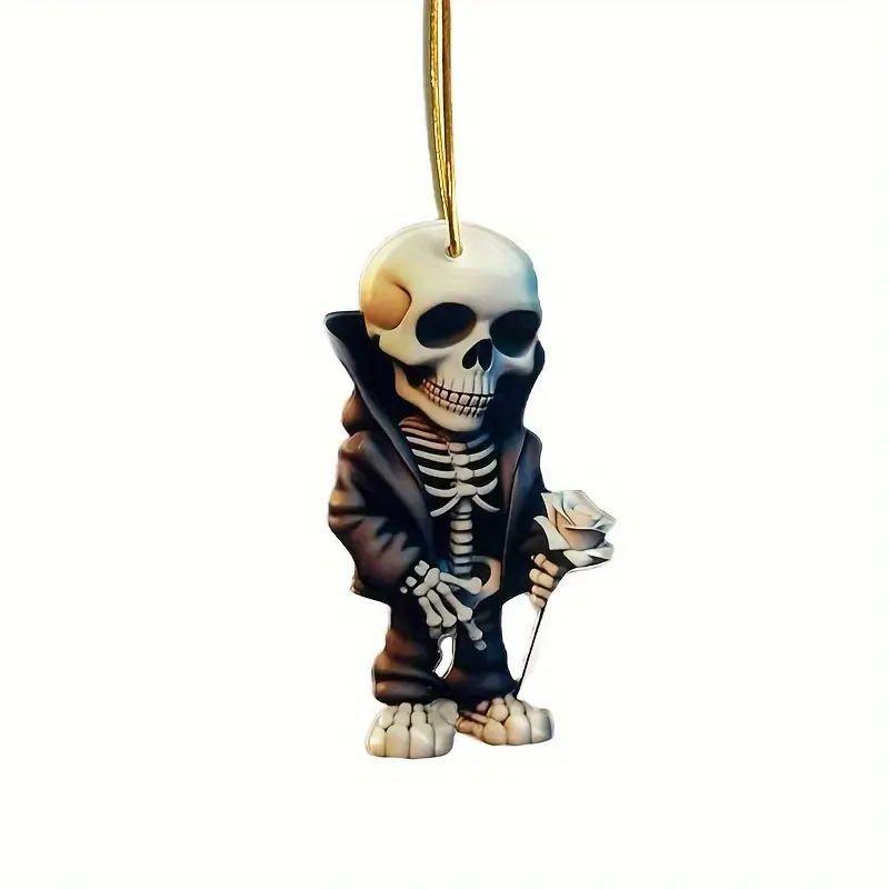 Unique Design: This 2D acrylic skull ornament features a whimsical and playful cartoon style, making it a standout decoration for your vehicle during the festive season.