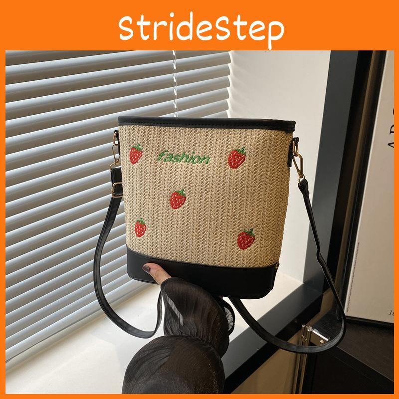 Trendy Chic Woven Bucket Bag For Women Summer Sling Tote Handbag With Soft Structure