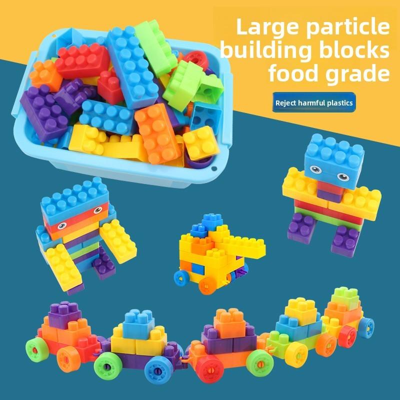 This plastic building block set features large, easy-to-handle pieces designed to foster early childhood development. Made of durable plastic, it includes 128 small-sized or 70 large-sized colorful blocks for creative assembly and spatial awareness. Ideal for fostering fine motor skills, hand-eye coordination, and parent-child interaction, it supports cognitive growth through hands-on play. Suitable for indoor play areas, children can build and dismantle structures, enhancing problem-solving abilities. Wipe clean with a damp cloth to maintain cleanliness.