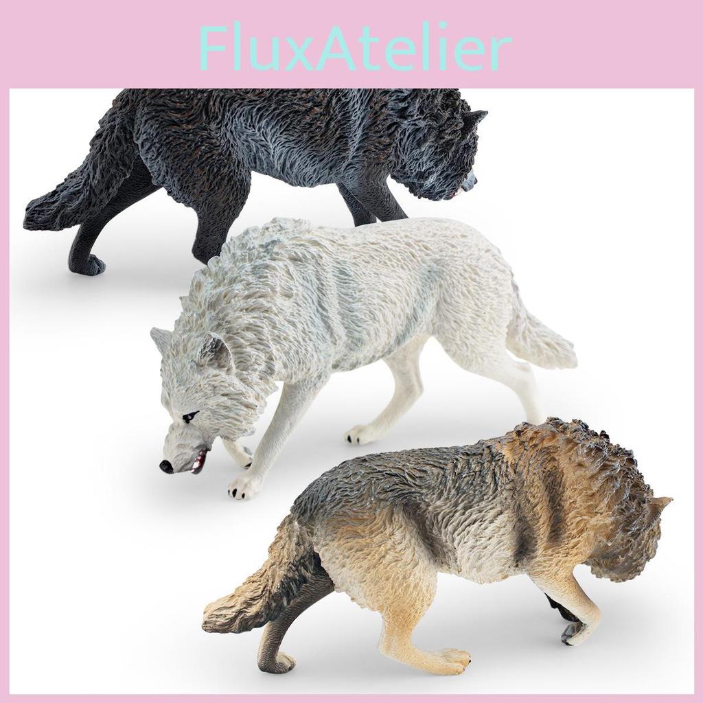 This static wildlife animal model features realistic representations of North American wolves, made from durable PVC material. providing a stable and detailed desktop decor. The set includes black, white, and gray wolves, perfect for educational displays or nature-themed environments. Easy to clean with a damp cloth, these models are suitable for home, office, or classroom use, bringing natural authenticity to various display settings.