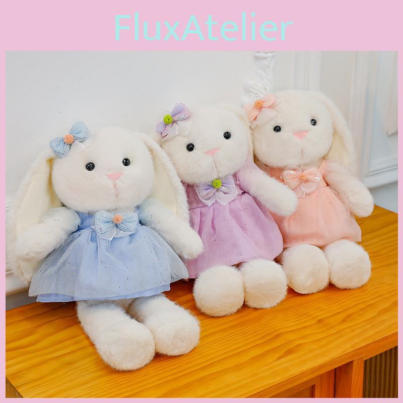 Plush Bunny Doll With Long Ears And Dress And Bow Designfor Kids Gift And Decoration