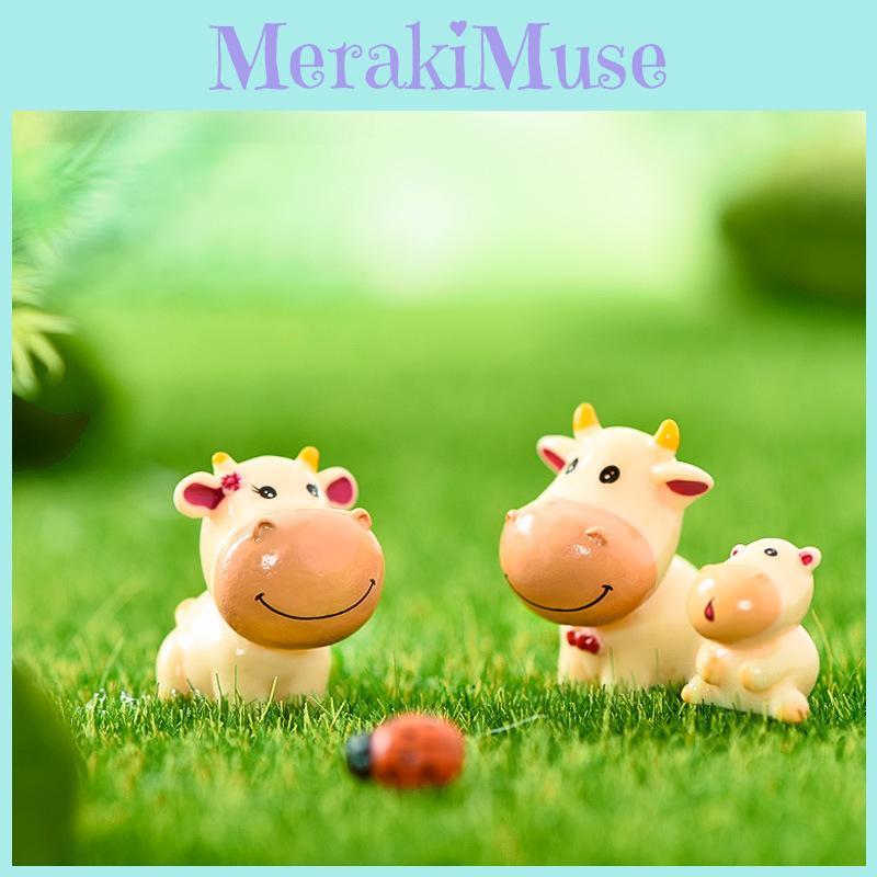 Cute Resin Ox Figurine Cartoon Style Diy Miniature Animal Decoration Set