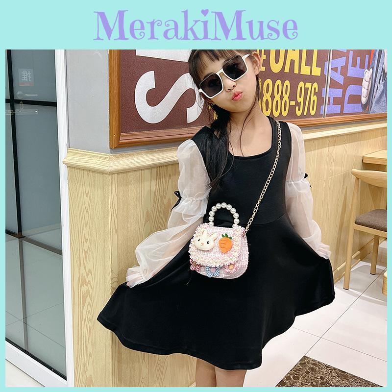 Adorable Kids Purse Cartoon Girls Pearl Handbag Breathable Cute Princess Accessory