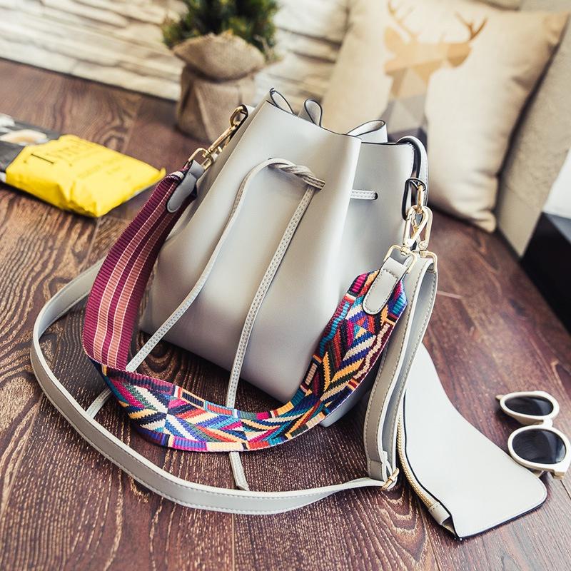 Elegant Fashion Women Colorful Wide Strap Bucket Shoulder Bags For Versatile Style