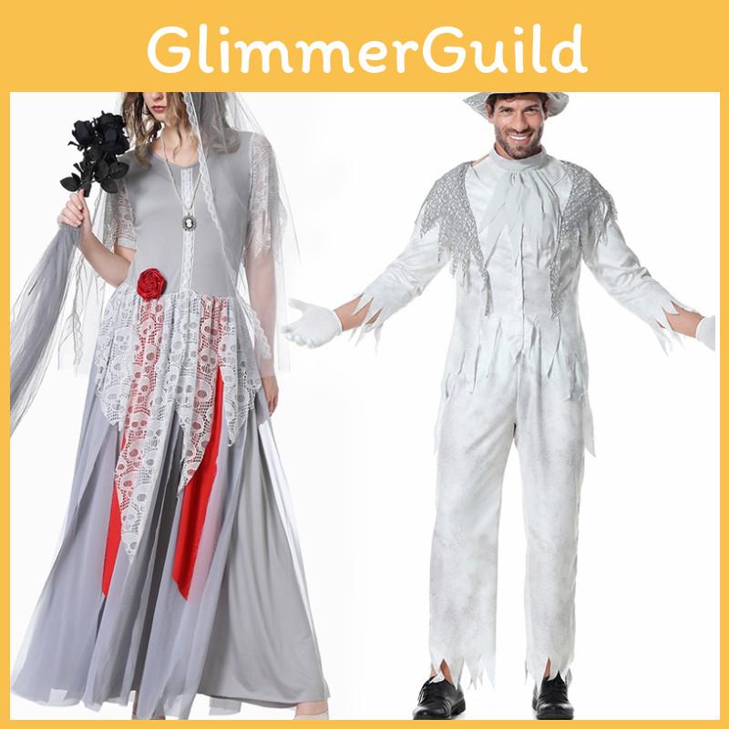 Ymkq Halloween Vampire Party Costume Adult Unisex White Ghost Bride And Groom Cosplay Performance Attire