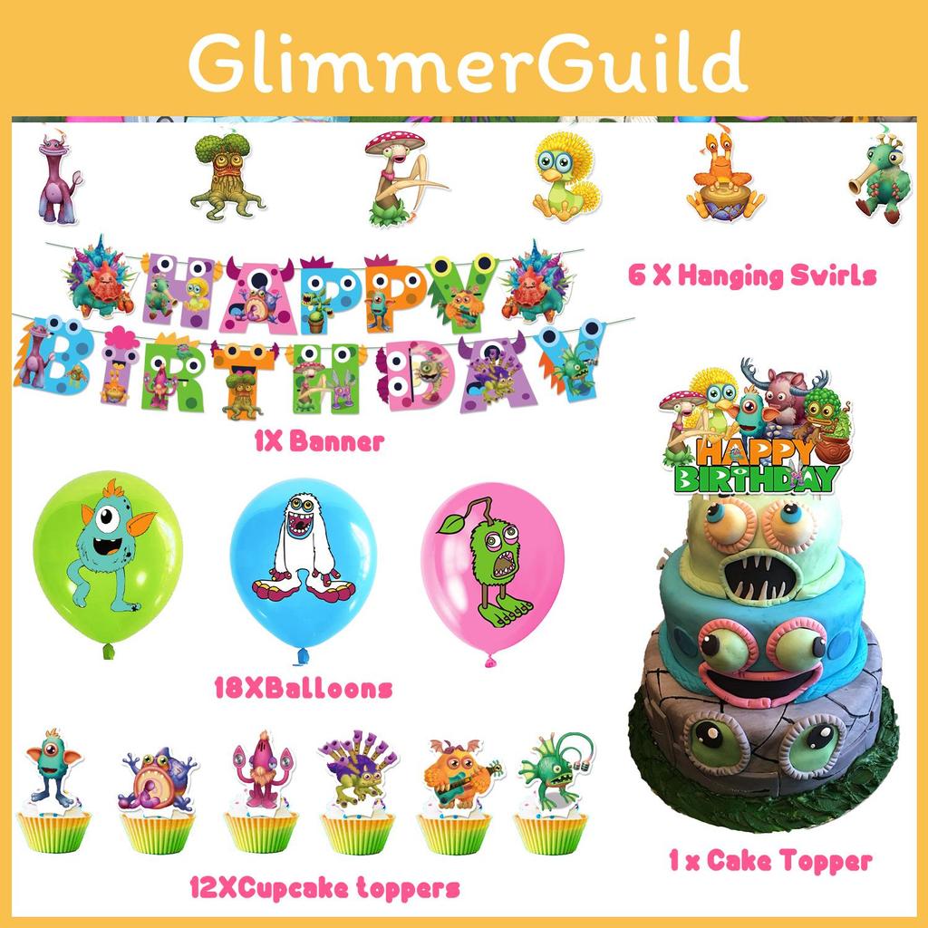 My Singing Monster Birthday Party Decorations Set Flag Balloons Cake Toppers And More