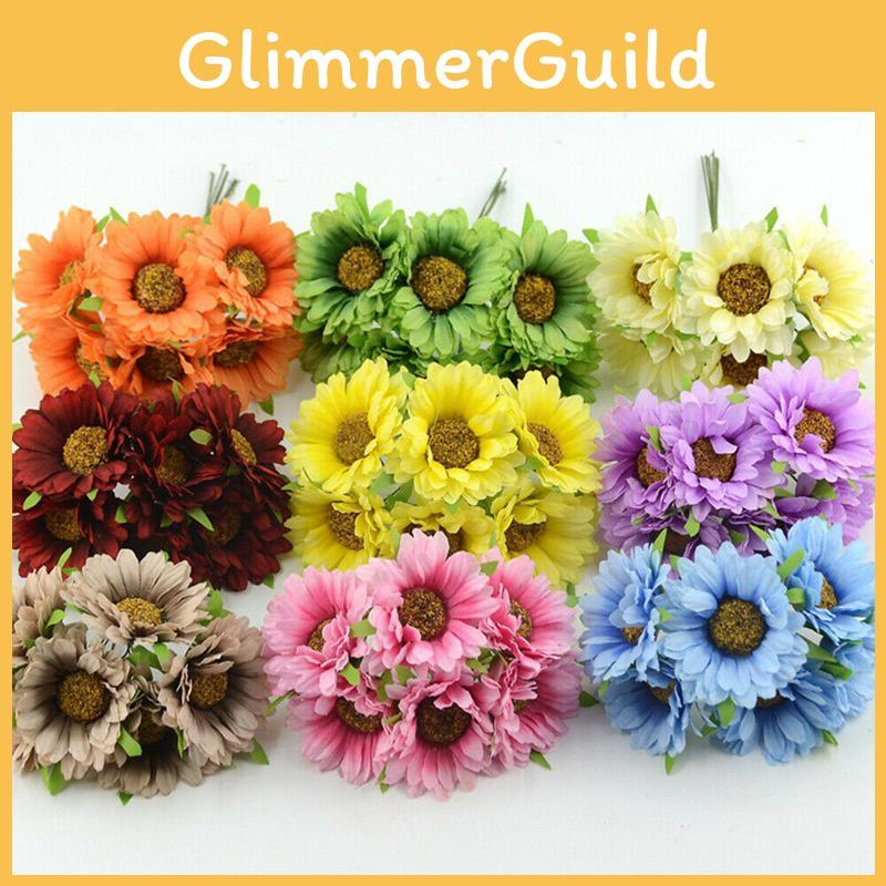 Lush 6pcs Artificial Gerbera Daisy Fake Silk Flower For Beautiful Diy Bridal Bouquets