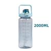 This water bottle features a large capacity of 2000ML, allowing you to stay hydrated throughout the day without the need for frequent refills.It comes with a straw, making it easy to drink on the go, and the marked scale allows you to keep track of your daily water intake.The bottle is lightweight, easy to carry, and fits perfectly in your backpack or gym bag.With its sturdy construction and leak-proof design, this water bottle is perfect for those who are always on the move.