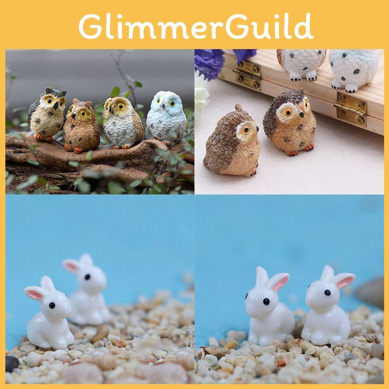 Adorable Miniature Plant Pot Decoration Featuring Cute Resin Rabbit And Owl Figurines