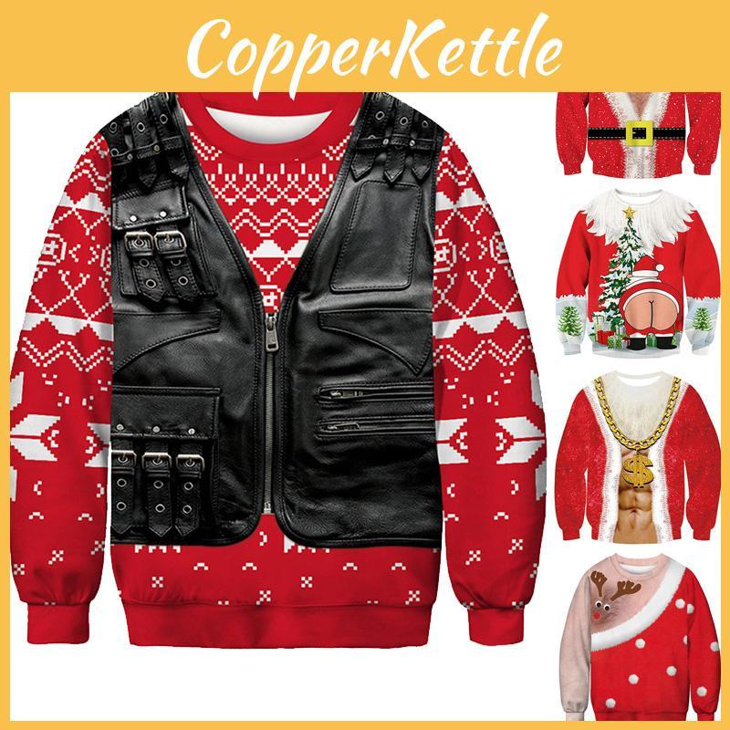 Cozy And Festive 3d Ugly Christmas Print Crew Neck Pullover Sweatshirt For Women And Men