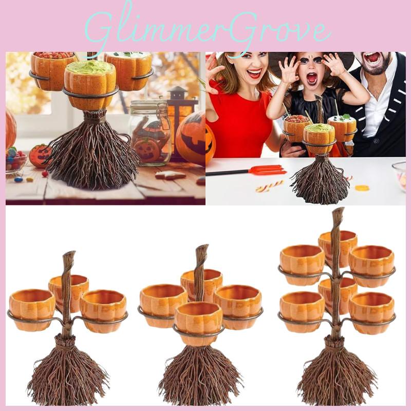 Introducing our enchanting Halloween-themed Resin Pumpkin Cup and Broom Dcor, a whimsical addition to your seasonal celebrations! Crafted from high-quality resin, this delightful piece blends artistry with festive charm, making it the perfect decorative accent for your home or office. With options featuring three, four, or six charming pumpkin cups atop a playful broomstick, this dcor not only captures the spirit of Halloween but also adds a touch of elegance to any setting.