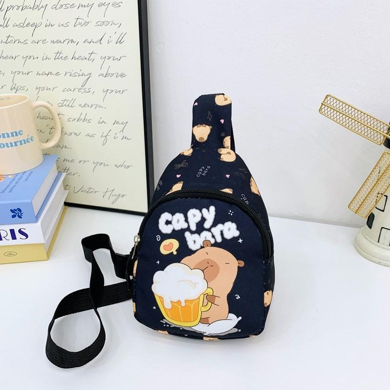 This toddler cartoon capybara crossbody bag features a lightweight nylon construction, It offers a fun, versatile design with vibrant colors suitable for children and a soft polyester lining for added durability. Its lightweight build supports daily use for preschoolers and is easy to clean with a damp cloth.