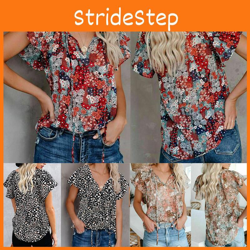 Elegant Womens Summer V Neck Short Sleeve T Shirt Featuring Vibrant Floral Print Design